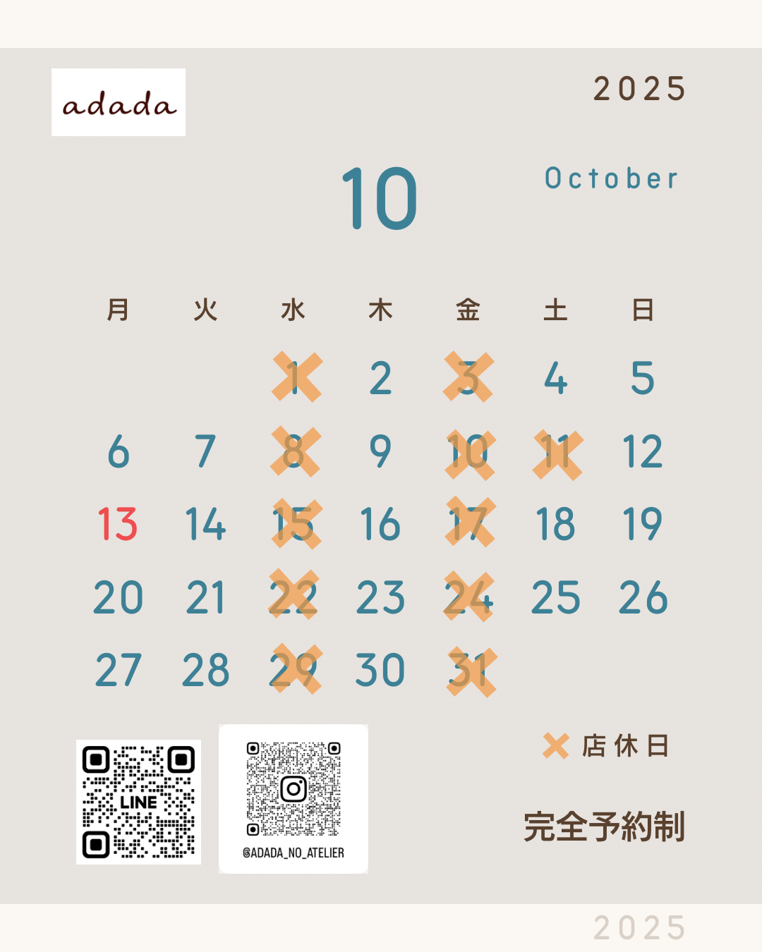 水曜定休(金曜日は都内サロンワークのためclose)不定休あり