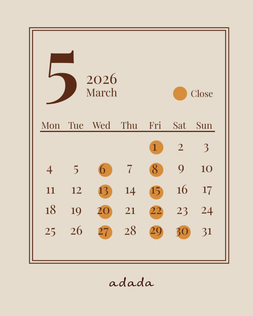 水曜定休(金曜日は都内サロンワークのためclose)不定休あり